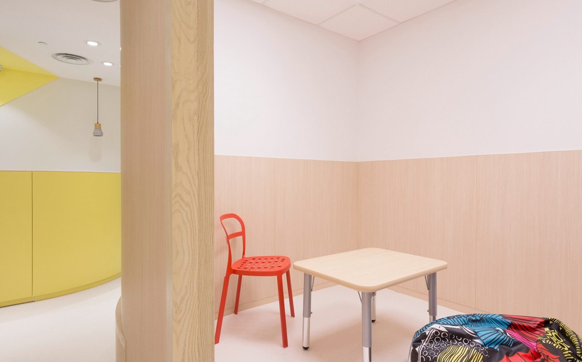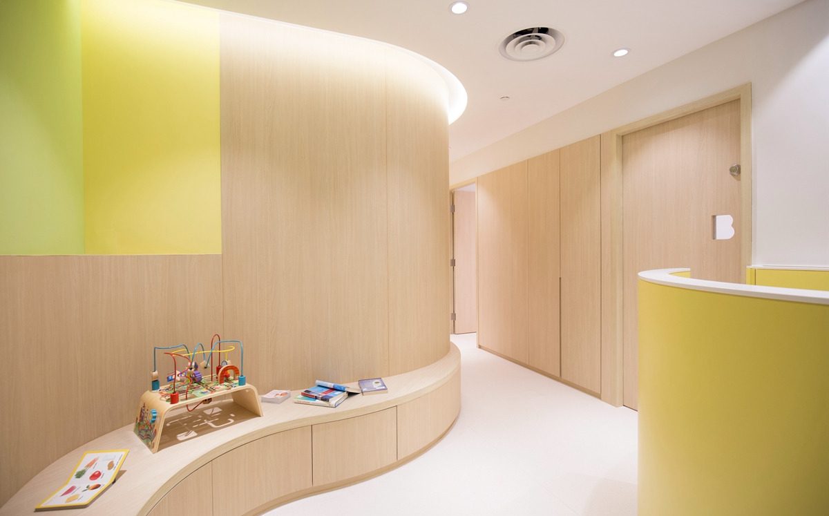 到設計 Hennis 的兩間兒童評估及治療中心,我們參考了 Hennis 的要求,然後以室內設計呈現出來,Hennis 解釋道:「前來中心的 patients 情緒有時會比較波動,而家長亦會特別緊張,所以我希望中心沒有醫院或辦公室的感覺,有的是令家長和小朋友都可放鬆的氣氛,讓他們舒服地表達和分享感受。」中心設計柔和而明亮,我們用上淺色橡木和 pastel 色系,配襯弧形線條,置身其中讓人可放鬆緊張的情緒。我們更特別在每道房門上開設小窗,以保持房內外的連繫,讓心理學家可留意到房內情況,確保孩子安全。