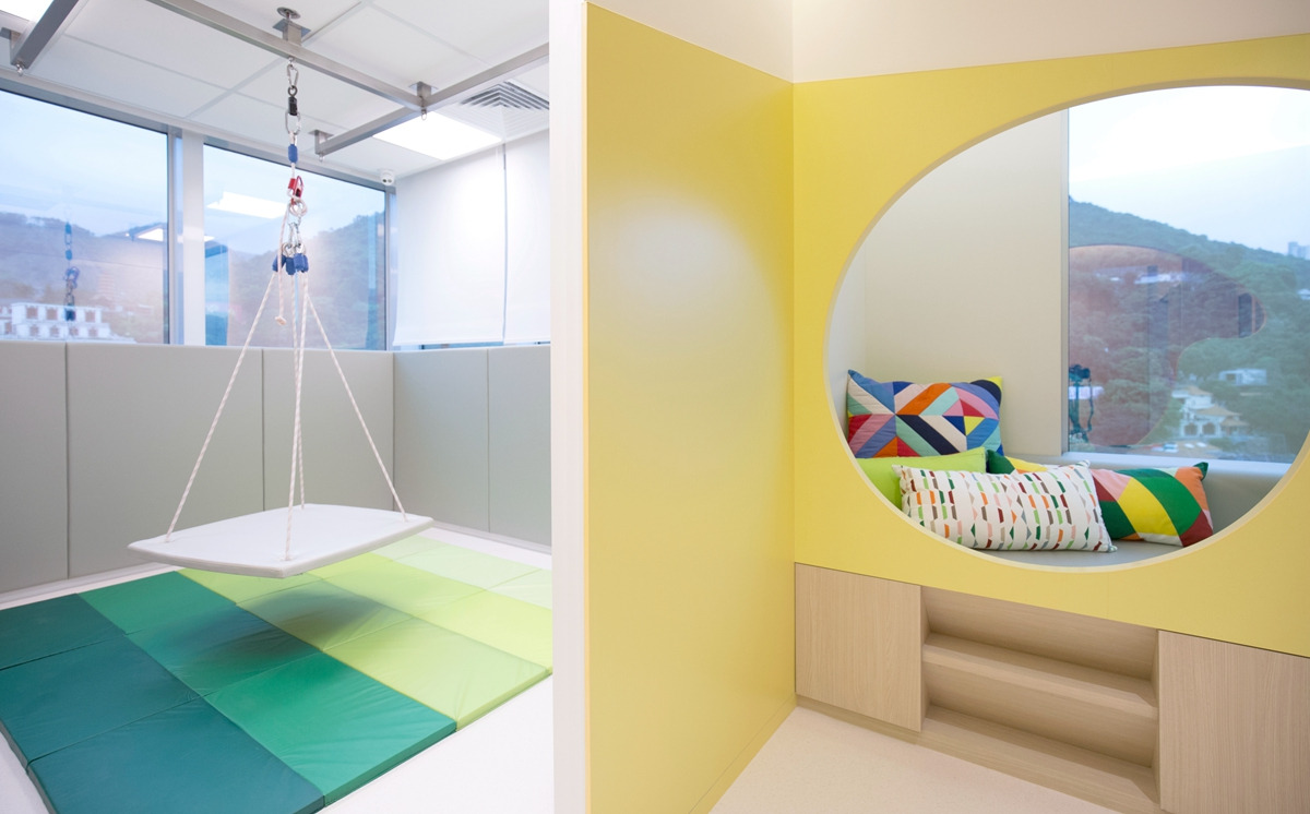 另外,為了讓孩子更有安全感,我們特地在某些房間設置恍如「樹窿」的空間。想出這個設計,是因為我從小已喜歡車,駕車讓我可沉醉在自我的小小空間之中,我喜歡聽着音樂,完全投入不被干擾的世界,彷彿把日常的瑣事統統拋諸腦後,所以我期望當小朋友走進這個「樹窿」,都可在一個被包圍的安全空間之中,慢慢放鬆激動的情緒。